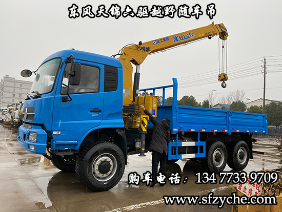 東風(fēng)天錦六驅(qū)隨車吊詳細(xì)參數(shù)配置:東風(fēng)天錦D530一排半駕駛室?guī)Э照{(diào),6×6驅(qū)動,康明斯ISDe270 30,國三排放標(biāo)準(zhǔn)發(fā)動機(jī),法士特8JS118變速箱,ZQC1200(機(jī)械式)分動箱,前橋6噸,10噸雙后橋,大江車橋輪邊減速,12.5R20越野輪胎帶備胎,軸距4100+1300mm,大梁280mm,電動玻璃,方向助力,斷氣剎,大箱尺寸5000×2400×600mm,底板采用4mm花紋板,采用徐工原廠5噸3節(jié)臂隨車起重運(yùn)輸機(jī)。