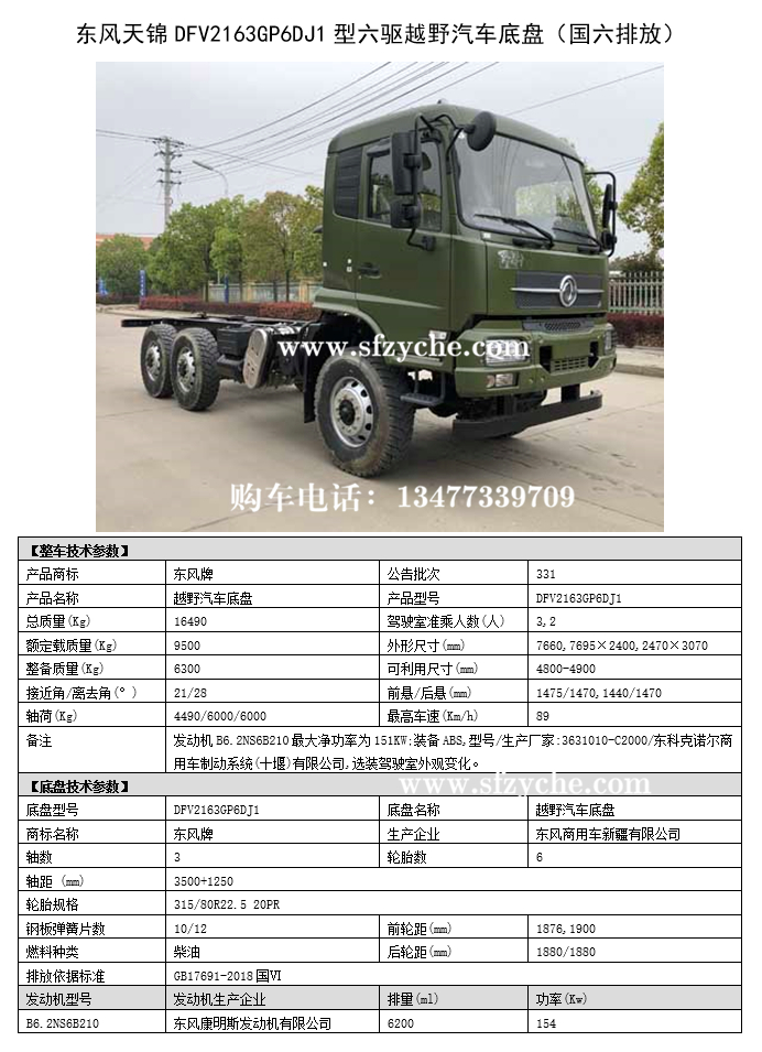 新聞中心東風天錦DFV2163GP6DJ1型六驅(qū)越野汽車底盤參數(shù),國六排放六驅(qū)天錦系列公告在第331批《道路機動車輛生產(chǎn)企業(yè)及產(chǎn)品公告》新產(chǎn)品公示中已公示,公示完成即可正常上戶。