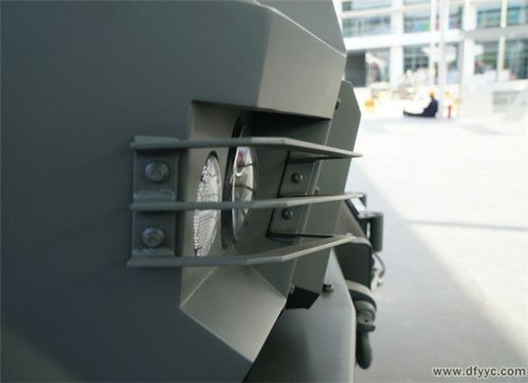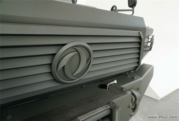 東風四驅防雷反恐戰(zhàn)車的前組合燈分為帶透鏡的近光燈、雙角度照射遠光燈,轉向燈位于翼子板兩側。近光燈與遠光燈被3幅面橫置格柵保護。