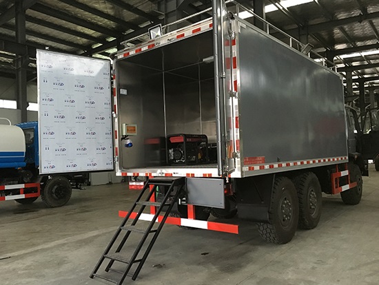 東風六驅(qū)國五越野廂式車簡介:采用東風原廠六驅(qū)國五越野底盤EQ2220GD5DJ型,駕駛室為老款153,新款D913兩種可以選擇,康機190馬力帶增壓,機械式六檔變速箱,3.5噸軍檢分動箱,4.5噸雙聯(lián)式軍用驅(qū)動前橋,5噸軍用貫通式雙后橋,方向助力,離合助力,前橋介入高低檔均采用電控式,315/80R22.5越野輪胎,軸距3500+1250mm,ABS,隨車工具及備胎各一套。