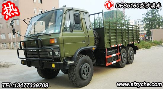 DFS5160TSML型沙漠車配置: 越野性能:東風康明斯6BT190馬力柴油增壓發(fā)動機 12.5R20鋼絲子午線越野花紋加寬型輪胎 軍工機械式六檔變速箱 新型發(fā)動機、全油路、進氣道自動電加熱系統(tǒng),可在-41℃環(huán)境下在駕駛室內(nèi)一鍵啟動 250mm雙層車架,承載能力加倍提升 350L超大油箱,滿足1300公里無需加油 三座單臥、環(huán)形儀表臺新款駕駛室 后置絞盤,牽引力44100N(選裝)。