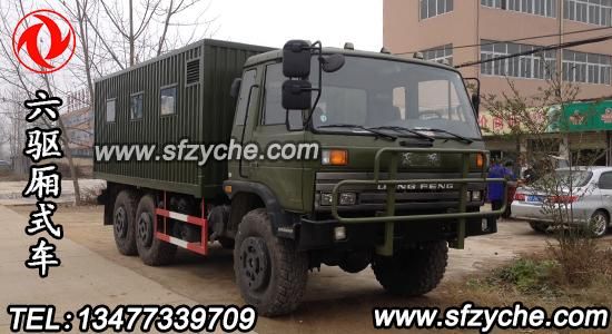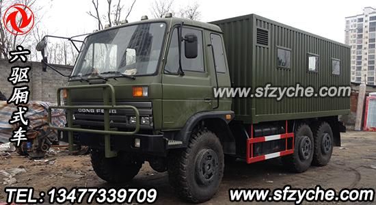 東風(fēng)軍用廂式越野卡車在湖北隨州正式下線,送往新疆喀什征戰(zhàn)沙場(chǎng),六驅(qū)越野廂式車采用東風(fēng)六驅(qū)軍卡底盤(pán)EQ2162GS,發(fā)動(dòng)機(jī)采用康明斯190馬力中冷增壓,東風(fēng)軍用分動(dòng)箱,東風(fēng)6擋變速箱,東風(fēng)軍工車橋,全部為軍檢合格產(chǎn)品,采用12.5R20型子午線大花紋沙漠越野胎,車廂整體采用1.5mm瓦楞板,全鋼骨架設(shè)計(jì),更加安全牢固,貨箱尺寸5100*2500*2100.東風(fēng)越野廂式卡車圖片如下: