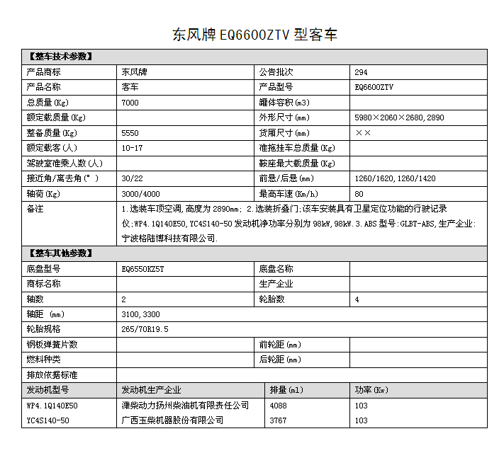 東風(fēng)國(guó)五四驅(qū)客車(chē)EQ6600ZTV配置參數(shù)及圖片