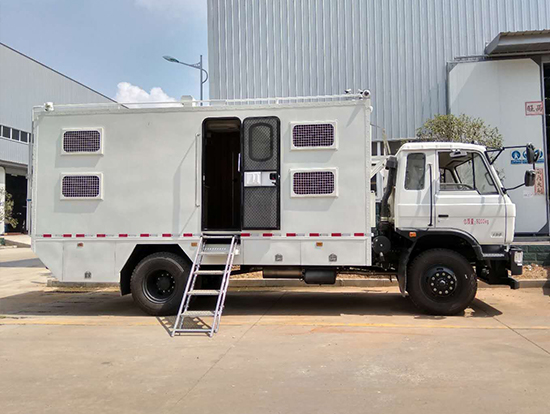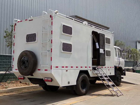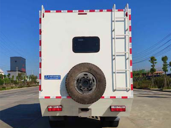 三、東風(fēng)四驅(qū)越野宿營車, 4驅(qū)越野宿營車用途:適用公安、特警、公安、邊防、衛(wèi)生、交通、礦山、地質(zhì)、軍隊等部門]長期野外作業(yè)、勘察、救援、搶險、救災(zāi)等宿營用,箱體空間利用大化。內(nèi)部配置:配備前儲物柜、后儲物柜、液晶電視機(jī)應(yīng)急燈、頂燈、頂置空調(diào)、床墊、被褥等。選裝配備8組豪華折疊臥鋪、未鋪上下梯、安全保險帶、電源插口等,細(xì)節(jié)精致。外置燃油加熱器、頂護(hù)欄、前爬梯、隱藏抽拉梯、專用房車門、專用玻璃滑窗、警示燈等。