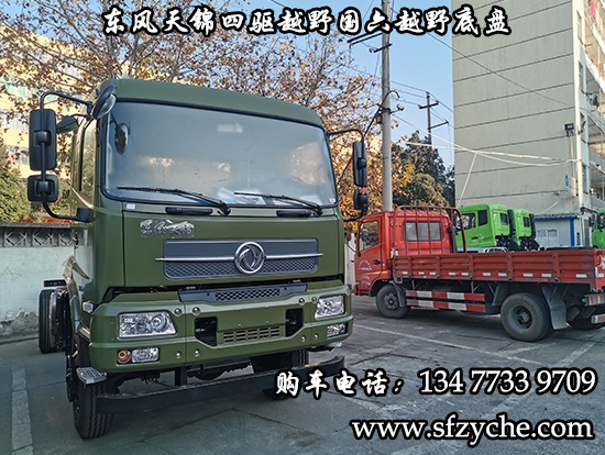 國六排放東風(fēng)天錦四驅(qū)越野底盤正式下線了,東風(fēng)天錦4*4驅(qū)動(dòng)國六越野卡車底盤采用:東風(fēng)天錦D530一排半駕駛室,4×4驅(qū)動(dòng),康明斯B6.2NS6B210國六發(fā)動(dòng)機(jī)210馬力,韶齒六檔變速箱,東風(fēng)商用車橋,前驅(qū)動(dòng)橋3.8噸,后橋10噸,10.00R20輪胎,軸距4500mm/4700mm,電動(dòng)玻璃,方向助力,斷氣剎,ABS,大燈自動(dòng)調(diào)節(jié),自動(dòng)調(diào)整臂,選裝原廠空調(diào)。