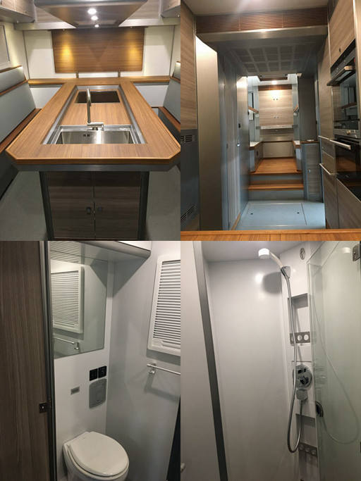 | 1.發(fā)動機最大凈功率397KW。2.側防護為裙箱結構,材質為高強度鋁合金,離地高度為545(mm),后防護主體為鋼管(Q345/120×60,mm),離地高度為:400mm,連接方式為:螺接。3.車輛長度/前懸/后懸/后伸對應關系為:10550/1510/2365/500,mm。4.車輛ABS采用雙通道前后式控制,型號為0 486 106,生產廠家為KNORR。5.車頭內藏式燈具為選裝,僅限人員在野外非道路狀況下工作和生活照明使用。6.頂部選裝太陽能板(最多12塊,可根據(jù)電力配置不同而減少)。7.車廂內部配備可變化的桌椅、廚具、洗菜盆、升降床、洗臉盆、馬桶、淋浴、空調等生活設施。 |
