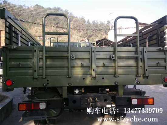 東風國五天錦EQ1120GA2型運兵車,4×2驅(qū)動,D530平頭一排半平頂駕駛室,,軸距3800mm,康明斯ISD245 50國五排放245馬力,6.7升發(fā)動機,八擋變速箱,帶電加熱(預熱塞)冷起動裝置,全鋼全鋼 主油箱160L,80L副油箱,Φ395mm推式膜片彈簧離合器,東風 4.5噸前橋,9噸后橋,主減速比5.286,車架斷面250×80×(7+4)mm,鋼板彈簧片數(shù)7/9+6,9.00R20鋼絲胎,電動玻璃升降器,中控門鎖,通道式儀表板,帶空調(diào),車廂內(nèi)部尺寸為4950x22325x600mm鐵木混合結(jié)構(gòu),邊板帶坐凳,板材采用國標鋼材,邊板1.2mm,底板為3mm的花紋鋼板,車廂底橫梁用槽鋼加固,車廂縱副梁全槽鋼結(jié)構(gòu),能滿足客戶運輸重型貨物,適應部隊野外使用及冰雪路面行駛要求。全面繼承東風40多年軍車越野車制造經(jīng)驗,動力總成匹配合理,生產(chǎn)技術(shù)成熟穩(wěn)定,整車車輛全面通過軍檢。